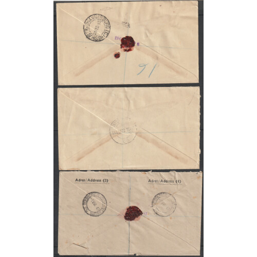 Official Mail: OHMS three covers addressed to the Ministry of Supply Adelphi London from Johannesburg two with official stamps ovptd affixed 6d, or 5½d as 1d strip of 5 & ½d, tied local cds and each cacheted TECHNICAL LIASON OFFICER / DEFENCE / ESCOM HOUSE. One addr to Director of Tank supply. Faults but nice trio.