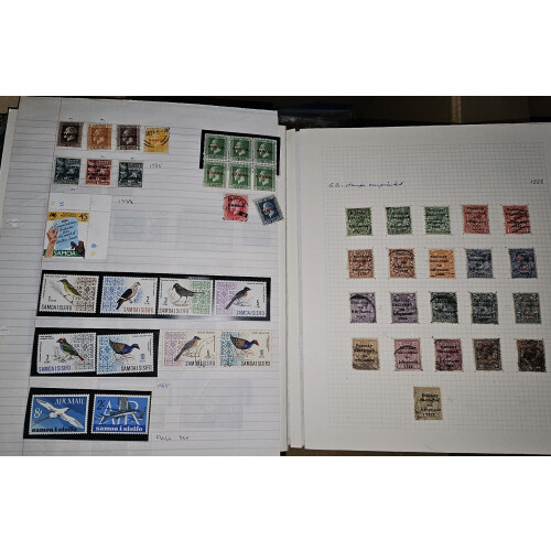 Accumulation in a BOX with worldwide ranges in stockbooks and albums, British Commonwealth in a well filled Tower springback album QV-QEII used mainstream (100s), Ireland used defins and commems in a high quality Willy Balasse (Brussels) peg album (similar to Oriel) with gold faced leaves, collections on leaves Saar, Saudi Arabia incl 1960s Oil Plant, Airs etc, Samoa, Senegal, Somalia, another peg album with mint GVI-QEII ranges and GB QEII on faced leaves plus extra pack of leaves etc, 100s. Heavy lot!