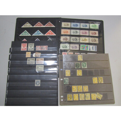 ALBUM LEAVES and Stockpages pile of worldwide ranges mint and used, all periods with diverse selection of different countries noted Egypt, Bavaria, French Colonies, Argentina, Germany & states, Luxembourg Europa set 3 U/M, Canada QV small Queen Heads used, NSW, India, Cyprus, Malayan states, S. Africa, Australia Roos low vals duplicated, Greece, Switzerland etc, 100s.
