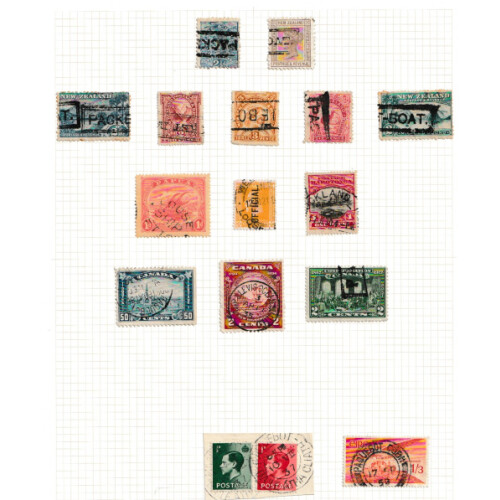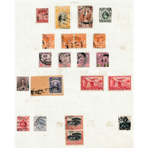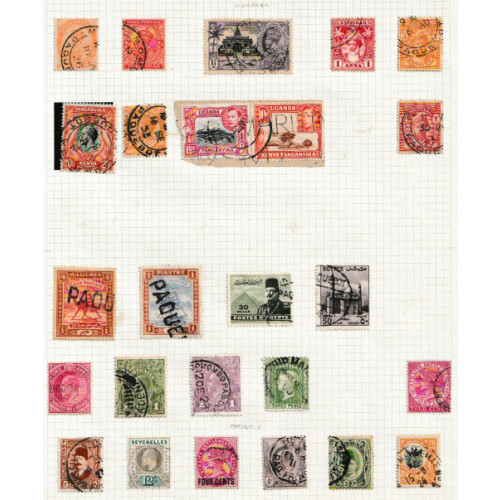 British Commonwealth: Maritime cancels on stamps QV to QEII on leaves with more interesting noted incl S. Leone 2½d with Liverpool Packet CDS plus QV-EDVII with Paquebot CDS's, St Vincent with Southampton Ship Letter CDS (2), Dominica Posted on Board boxed h/s, Barbados with M/S Colombia, plus 6d Seahorse with Deutsches CDS, 1925 1d seahorse with New York Paquebot, Niger Coast QV 1d (2) with Paquebot CDS, Marseilles cancels on Seychelles, Tanganyika, Paquebot on Malayan states, Macau on HK 10c blue, Loose Ship Letter Papua, Packet on NZ, Hong Kong CDS on India on paper, Tenyo on HK, Tayo on HK, etc, intr lot. (126).