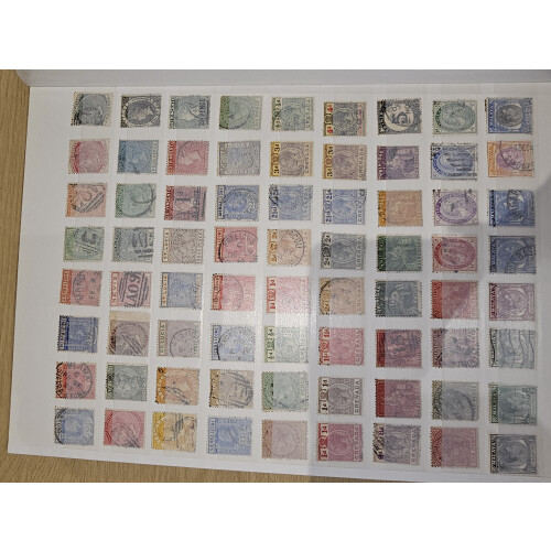 British Commonwealth: Stockbook with over 550 QV-GV used stamps arranged incl India, Jamaica, Malta, BWI, Hong Kong, Sierra Leone, few GB incl 1880 1s orange-brown, 1957 4d rose (3), Gibraltar etc, mainly to lower or odd middle values.