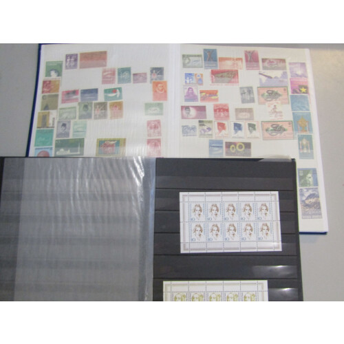 Carton containing six stockbooks of various size with used collections of Scandinavia, France, sparse South America, umm collection of Netherlands Antilles, mint Indonesia, few |British Commonwealth, small lot of modern Germany umm sheetlets of 10