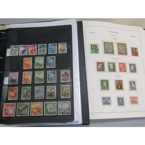 Large plastic crate with useful country collections of West Germany 1949 - 1977 used in Ka Be hingless album, Austria umm 1968 - 86 in Lindner album, also Austria chiefly used collection with better mid period sets, Nicaragua mint & used from earlies collection in binder, Czechoslovakia in two ring binders chiefly used 1918 -1990 sparse in places& France in printed Lindner album 1964 - 76 fine used virtually empty to 1969. (qty)