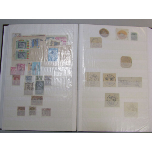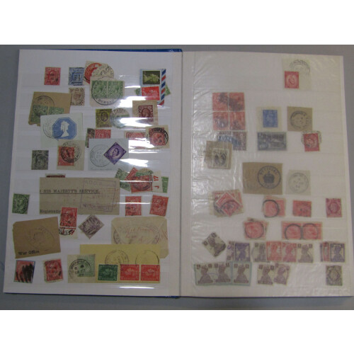 POSTMARKS collection in two s/bs cut from envelopes on piece & off paper with much GB Military inc Censor markings, FPO's, Boer War, APO's, India, Commonwealth & Foreign. Good lot for the postmark collector (100s)