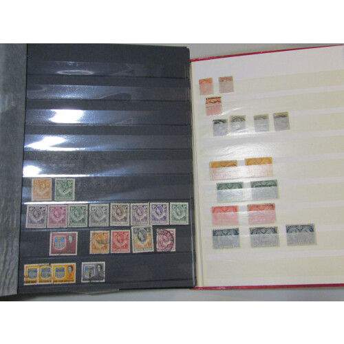 WORLD BOX of albums and stockbooks, with a British Commonwealth, Great Britain, and loose, Jamaica collection in ring binder, Zambia FDCs bundle, good lot for sorting through. 1000s.