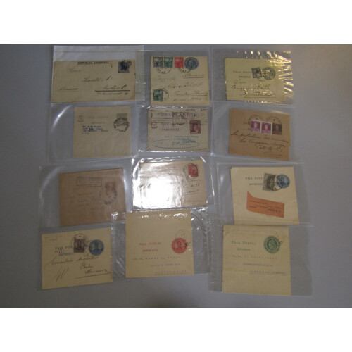 Argentina: Earlier to middle postal stationery covers, cards and wrappers some uprated with attractive combinations noted 1910 wrapper to The Argentinean Consulate, Berlin. 1919 Tarifa Reducida Concession 1150 boxed h/s, 1900 5c orange uprated to New York, etc, intr group. (24).