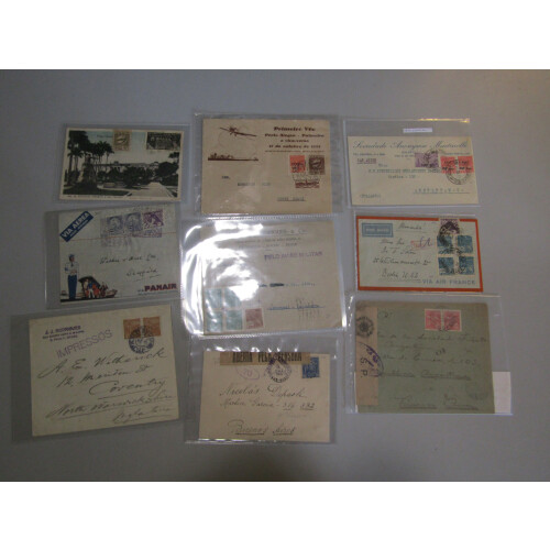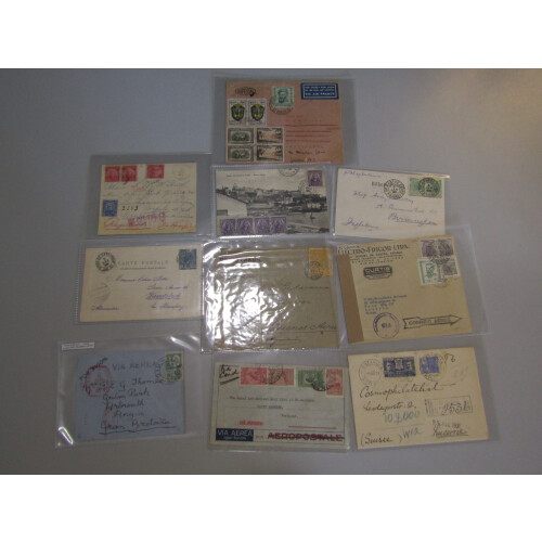 Brazil: Twenty Eight covers early to middle periods with interesting incl 1934 airmail cvr to Scotland, censored, postcards incl Bahia, 1914 Bahia to France with nice combination on obverse, 1917 regd to USA, PANAIR illustrated cover, 1933 illus flight cover Porto Alegre to Palmeira and back, 1929 Empreza Lux advertising env., intr lot. (28).