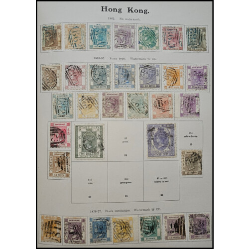 A standard postage album partially filled with an abundance of British Commonwealth sets and singles in the period between QV to EDVII stating to be £150,000 cat value with over 4000 stamps, A predominantly used collection noting: A nice GB section with values up to 10s and a nice range of Officials Army officials to 6d and Govt Parcels to 1s. Also has a nice selection of Cape of Good Hope triangles ranging from full margins to two margins up to 1s, A well filled section of Ceylon, 1906 set of Hong Kong to $2, 1923-27 India set to 5r but not to strong in India states, 1900-01 Malaya set to $5 WMK CC, Natal stamps to 10s, And many more shades varieties across the album well worth viewing for avid collector, plenty of room for expansion. (4000+).