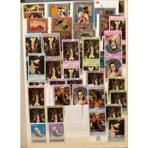 Stockbook with world countries A to S mainly more modern with many thematics and useful imperfs, mainly unmounted mint noted Australia to $4, Bolivia, Burundi, Cameroun imperfs, China 1962-3 Dances sets of 6, Taiwan, Congo airs, Dahomey, France, Gabon, Greece, Italy, Japan, Mali, Monaco, Paraguay, Fr. Polynesia, Russia, Saar etc, 100s, huge cat value. Ideal to split.
