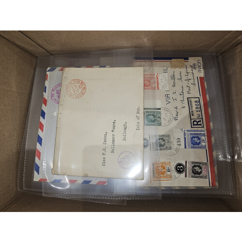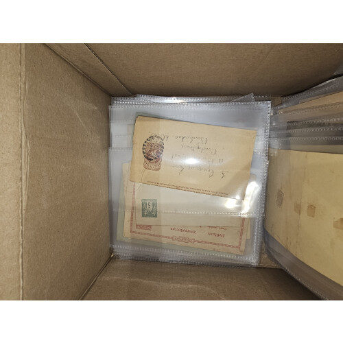 A worldwide accumulation of covers many in cover sleeves from early to modern, noted GB P/S, France, unused P/S for earlier Congo, Iceland, Hawaii, Spain, Portugal & Colonies, German Cameroun, WH SMITH newspaper wrapper for EDVII to Switzerland (2), GB QV 1d pink used envelopes group, 1896 QV Sun Insurance env., 1877 Railway Accident Mutual Assurance Co Ltd (In Liquidation), 1923 Stamp Exhib. cancels on regd cvr to Capetown, Leeward Is. 1949 GVI multi franked cvr, 1955 EIIR h/s in violet to IOM, Germany HANSA 3pf unused P/S cards, Malayan states 1953 Coronation FDCs for diff states, Argentina airmails etc, good qty.