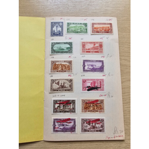 1925 onwards mint assembly in club booklet better noted 1926 War Refugees, 1936 Damascus Fair, 1940 airs, 1942 Syrian Rep., 1943 Union of Latakia in gutter pairs, 1943 Death set, etc. Nice little lot.