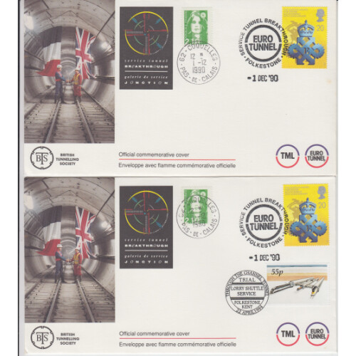 1991 Four official first day covers commemorating the Breakthrough 22 May 1991 during the building of the Channel tunnel. Limited number of 200 issued.