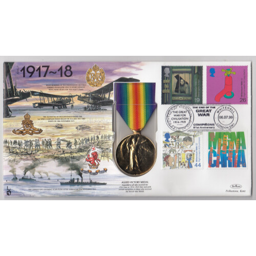 1999 Illustrated colour cover commemorating 80 years since the end of World War I with Allied Victory Medal (copy) issued by Benham