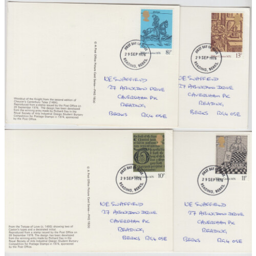 1976 500th anniversary of British printing set of four PHQ cards 29 Sep 1976 used.