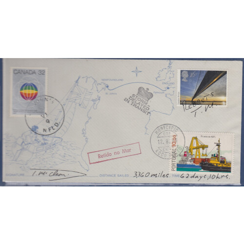1983 Philatelic Commemorative Cover carried on yacht Giltsput from St. John's Newfoundland to Oporto Portugal with signature of Tom McClean.