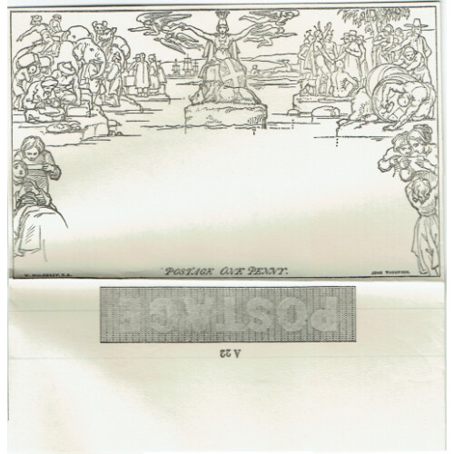1990 Mulready reproduction by Royal Mail for 150th Stamp Anniversary x 3 unused examples.