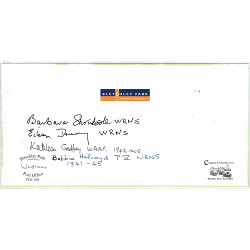 2006 Bletchley Park - Multi signed limited edition cover of 1000 for Bletchley Park WW2 Veteran cover bearing six stamps cancelled special Bletchley Park Post Office cancel, signed on reverse by four different service women who served there as WRNS in the war. Published by Chapman and Mitchell Covers.