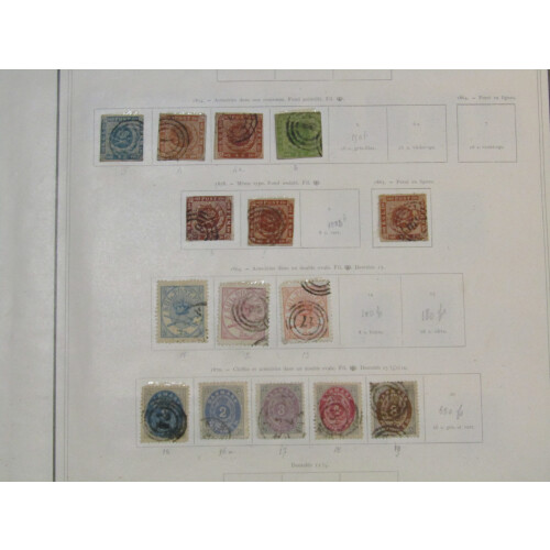 Old time collection on leaves mint and used with a useful assembly from 1854 issues to 1940. Includes better part ranges noted 1854 2s blue, 4s (2), 8s, 1858 4s (3), 1864 2s, 3s & 4s (cat £166), 1870 2s (2 shades), 3s (cat £130), 4s & 8s (cat £100), 1875 14 values to 100o (cat £175), 1904 50o & 100o used (cat £140), 1912 surchs 35o on 20o used (cat £80), 35o on 32o green used (cat £85), 1913 King Christian incl 35o yellow, 50o purple & 1k brown mint (cat £133), to 10k used, 1928 Cancer Fund set m, 1930 60th Birthday set used, 1915 5k GPO used, back of the book incl Newspaper good range incl 68o brown mint (cat £120), Postage Dues 1921 1k blue (cat £90) mint, officials etc, mainly fine condition throughout. STC £2350+.