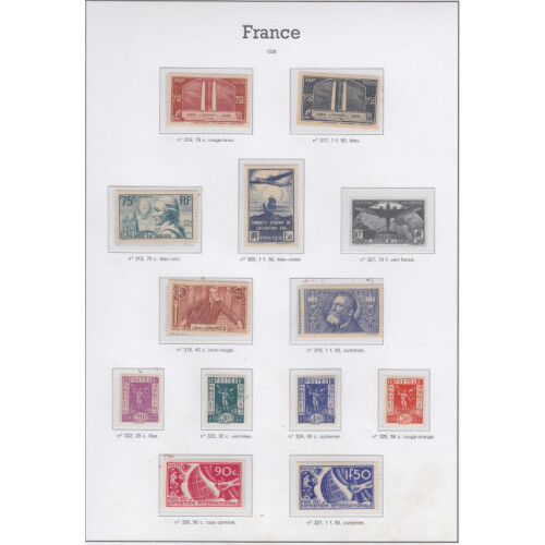 1936-44 Mainly unmounted mint year collection mostly complete for postage issues on Yvert printed hingeless album pages including 1936 Complete except for 100th Flight 10f top value, 1937 National Museums set hinged mint, 1938 Ader (toned gum U/M cat £130), 1940 surcharge set, Fund sets etc, High cat value. Retail €763.