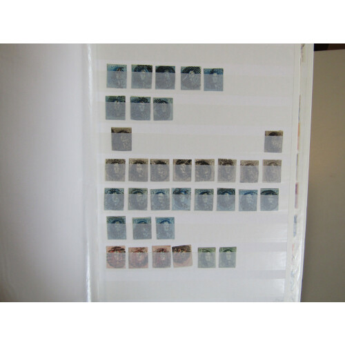 BELGIUM & LUXEMBOURG: Duplicated collection in a large stockbook of approx. 1550 stamps & 25 M/S mint & unmounted mint and fine used, noted 1849 10c brown, 20c blue (6), 1851-61 1c green (2), 10c brown (9), 20c blue (11), 40c red (4), 1952 13th UPU set 12 mint (heavy hinged, cat £375), to 20f f.u., 1949 Stamp Cent. 50f air f.u., nice range of defins and commems, Luxembourg incl Caritas sets, 1951 Promote Europe set used (Cat £160), 1957 Europa set f.u., etc. Approx 1550.