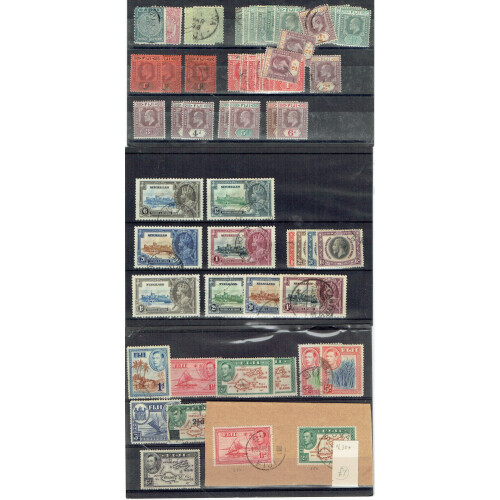 British Commonwealth extensive range of QV-QEII on stockcards includes many better sets and ranges both mint, unused (no gum), or used, very mixed in places noted NSW 1854 2d blue (added left side), 1d red blurred example (forgery), Australia GV incl Kook. 6d used, Ireland p. dues mint, NZ, Sierra Leone QV, Ceylon to 9d used, Br. Somaliland QV mint, Lagos QV 5d ovptd Specimen, Jamaica EDVII 2d grey ovpt Specimen, Aden Dow set to 10r used (Cat £850), Sarawak, Tanganyika, Queensland Chalons to £1 fiscal used, Ascension GV to 5s used, Canada 1908 Tercent set unused, EDVII 50c violet unused, N. Rhodesia 1938 set to 20s unused (no gum), high cat value.
