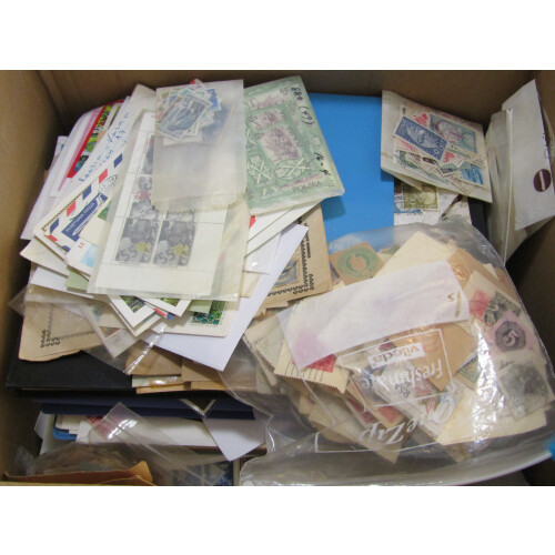 A worldwide accumulation in folders, on leaves, stockpages some country sections sorted into large envelopes, noted Surinam 1960s sets f.u., Netherlands 1980s modern sets f.u., Cuba on old time printed leaves from 1876 m & u, Japan defins, Elephant thematics, Germany areas on old dealer pages (STC $500), Denmark collection (STC $2,000), Ceylon GV War Tax in mint blocks, Canada back of the book, Switzerland mint and used sets & M/S STC $2,000, etc, 100s, ideal for breakdown.