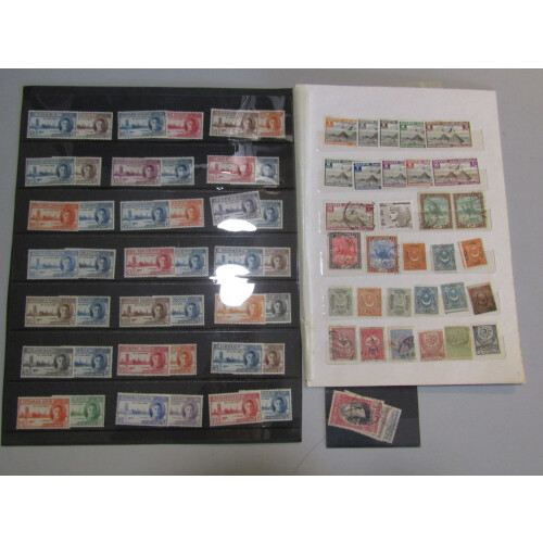 British Commonwealth jumbled ranges in boxfile incl on stockcards, stockpages and loose all periods mint and used, many bought from stamp auctions, noted amongst others Ceylon GV mint to 1r, S. Africa 5s black and green mint (toned gum cat £300), St Vincent 1904 1s vertical pair mint, St Lucia 1948 RSW used, Togo ovpt set to both 5s & 10s mint (Cat £70), KUT 1935 SJ set used, GV to 10s mint, 1938 to £1 mint (P.12½ or p.14), 1953 Coronation mint ranges, mint and used C/W on dealer pages, Br, Guiana QV to QEII incl 1954 to $5, Gold Coast QV to 2s brown mint, Somaliland, N. Borneo inc imperf pairs (6), Labuan to $1 mint, 1946 Victory mint sets, Egypt airmails mint etc, 100s, diverse and good sorter lot.