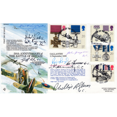 1987 (11 July) 30th Anniversary Flight cover signed by 9 different veteran pilots including Bill Reid, Avis Hearn, Alan Gear, Richard Haine, John Gibson, Ronnie Hay, J Millard, John Keatings, cacheted cover, very fine.