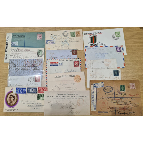OLD TIME Ledger album with useful 1840 to modern noted 1840 1d black (no margins), 1854 2d blue with arc postmark and numeral, 1858 2d blue with K in circle cancel, 1856 4d, 6d & 1s, 1862 3d, 4d, 6d & 1s, 1865 3d, 4d, 6d, 9d bistre pl.4, 1s pl.4, 1873 6d grey (SG 125 Cat £300) good used, 1876 8d orange sound used (Cat £350), 1891 £1 green used with red ink marks (Cat £800), 1883 9d green CDS (toned), 2/6, 5s, 10s, EDVII 2/6 (2 one with Vico St CDS), 5s carmine (2), 10s ultramarine CDS used, £1 blue-green with Registered WDO oval cancels (Cat £825), Seahorses GV 2/6 yellow-brown (faults), 1915 DLR 10s blue (Cat £875), GVI high values, QEII commems used, useful catalogue value. 100s.