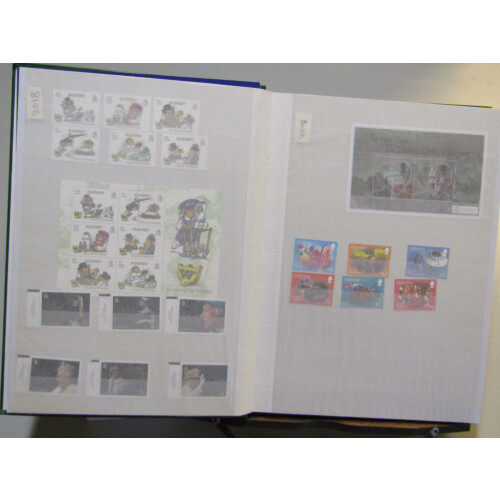 Alderney: 2018-2023 Unmounted mint sets and miniature sheets on stockpages including 2018 Wombles and M/S, 2019 SS Stella M/S, 2019 D-Day set & M/S, 2020 Birds long set, 2020 Sealife set & M/S, 2020 Santas Visit set, 2021 Decimalisation set & M/S, 2021 Nature Fruit & Veg set, Life of Prince Phillip, Secret Garden, Xmas, 2022 Queen's Platinum Jubilee set & M/S, Alderney Patois, Wildlife Trust, Breakwater set & M/S, Stories & Myths, 2023 Around the world. Useful face approx £120.
