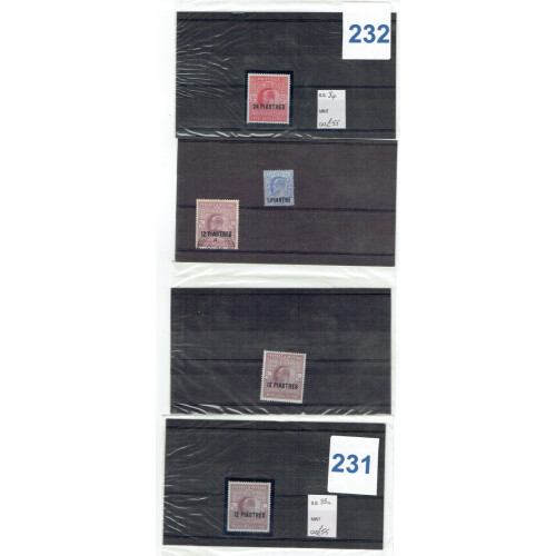 Collection mint and used on stockpages incl better noted C cancels on GB, 1885 12pi on 2/6 lilac mint (Cat £65), 1902 EDVII 12pi on 2/6 lilac mint (Cat £45), 24pi on 5s carmine mint (cat £32 each), Br. Currency 1905 1s dull green and carmine mint (Cat £42), 1921 Seahorses 2/6 brown (2 shades mint, cat £103), Turkish Curr. Seahorses 90pi on 5s red used (2, cat £60), 180pi on 10s used (2, cat £40 each), etc, useful lot, STC £680+.