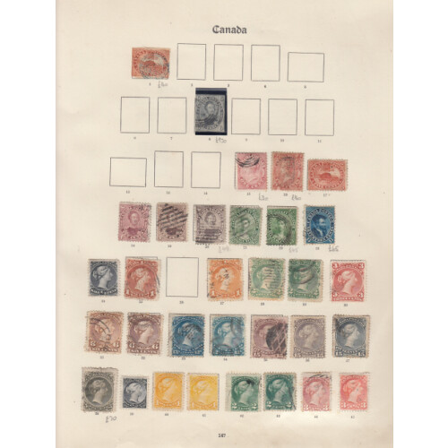1859-1955 Useful collection in peg album with many issues collected as both mint and used sets, part sets or singles, better throughout including 1859 1c rose used (2 shades), 12½c f.u., 1868 3c brown-red, 1880s 15c grey (2 shades), ½c black, 3c red (2), 6c brown, 1873 5c olive-green, 1882 ½c black mint pair, used pair, 1889-97 to 10c, 1893 20c vermilion & 50c blue mint original gum (Cat £600), 1897 Jubilee 13 values ½c to 50c mainly mint part original gum, (very mixed, 6c thinned) with high cat value all nice appearance (£860+), 1897-98 eight values to 8c orange mint (Cat £350), 10c purple used (Cat £75), 1898-1902 set used (Cat £200), 1898 Penny Postage 3 shades mint, 1903 EDVII mint 1c green (3 Cat £105), 2c rose (3 Cat £60 + vertical marginal imperf pair), 5c mint (Cat £90), used to 50c, 1908 Quebec set of 8 mint part original gum (usual gum faults, Cat £550), 1911-22 GV 5c mint (2 shades Cat £195), 50c mint (2 shades cat £195), 1916 Imperf x 8 2 shades mint (Cat £185), 1928-29 to 12c mint, set used, 1930-31 vals to 50c mint, 1932-33 to 13c violet mint, 1935 SJ set m, etc, enormous catalogue value approx £6000.