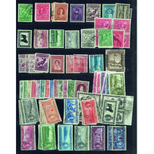 Useful collection from QV onwards with better early to middle periods all fine used laid out on stockpages in date order many items of note including 1880-82 1c brown (3), 2c, 3c & 5c, 1887 ½c (2), 1c green (4), 2c (2), 5c (3), 10c black (Cat £75), 1897-1918 to 5c, 1910 1911-16 Coronation to 12c (Cat £185), 1919 Caribou 8 vals to 15c (Cat £180), 1923-4 to 15c (Cat £125), 1928-9 Publicity 12 vals to 30c (Cat £260), 1933 set to 24c (Cat £240), 1935 SJ set, 1937 Coronation long set, etc, superb lot for an Imperial album. Approx 240.