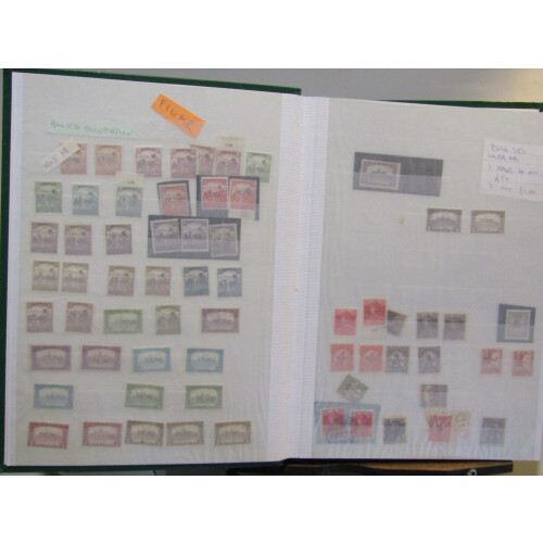 Large Stockbook with a good range of duplicated mainstream defins, commems and overprints, surcharges mostly mint and some used includes 1918 large range incl 10c & 15c both types mint (Cat £390), 40f olive (Cat £110), 3k mint (2, cat £55 each), 5k brown mint (Cat £120), 1919 Franco surcharges, 1920 d'Annunzio set to 10l mint (Cat £195), Express Letter 1920 set 2 mint (Cat £88), Military Post 1st Anniv. 10c & 20c mint (Cat £110), 5c & 25c used on paper plus Express set 2 used, 1921 Governo Provisorio set mint (Cat £450), 1921 Charity Stamps 24-IV-1921 Constituente Fiumana overprint set to 5l on 5c both mint & used (Cat £540), 1923 set 12 mint (Cat £170), comprehensive lot overprints taken 'as is', STC £3500 as genuine overprints.