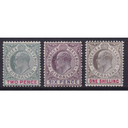 1904-08 Chalky 2d, 6d & 1s all hinged mint, fine, SG 58a, 60a, 61a, Cat £97.