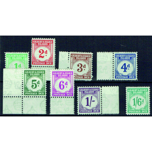 Postage Due: 1940 Complete set of eight unmounted mint (1/- with small thin), six values are marginal, very fresh, SG D1/8.