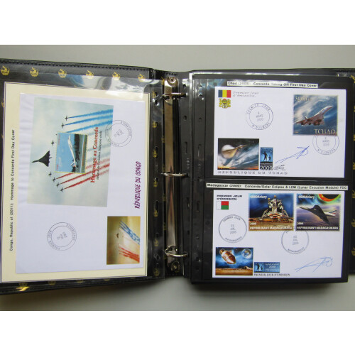 AIRMAIL COVERS: Attractive modern covers range of worldwide illustrated special event or FDCs with high face values mainly post independence French Colonies, some signed mostly around First Flight 2009, including 2009 Astronomy Year & 40th Anniv. of Concorde's first flight, 3000fr, 2011 Congo M/S for Concorde, Benin, Mali, Malawi, Hawaii 2003 local post, Palau, Rwanda, New Caledonia, Djibouti, Ivory Coast, Mali, Fujeira 1972 Gold or Silver Foil Concorde & De Gaulle, Wallis & Futuna 1976 250f, St Thomas & Prince Is., Comores Is., Barbados 2008 Concorde Experience etc, colourful lot. (c83 covers).