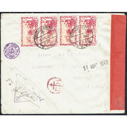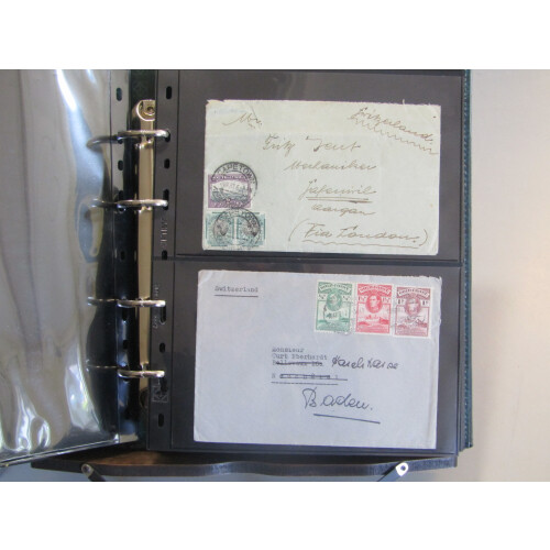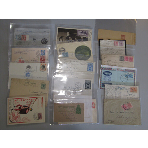 Cover album with a wide range of prestamp to modern issues with strength in Italy flight covers from 1940s, Philippines 1940s Jap. Occup FDCs, Switzerland airmail combination, Austria and Switzerland earlies, India WW2 censor covers and airletters, Germany 1936 Zeppelin Olympic Flight cacheted cover, France 1937 Museum set on special page tied, 1949 Stamp Centenary maxi cards, 1936 Aviation combination special card for Aviation meeting Le Baule, 1953 Trieste Nato FDC, 1950 Tobacco FDC, ERP 1949 FDC, 1917 Torino 1st Flight cvr, Austria early covers / entires, Italy 1860s Int. Post form handstamped Specimen (many faults), approx. 60 items.