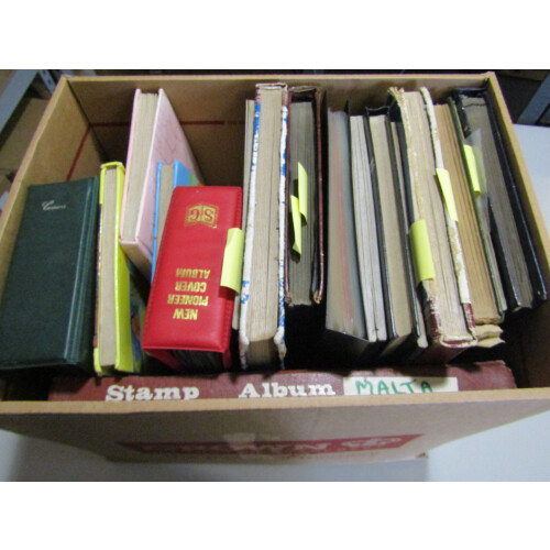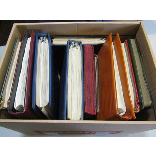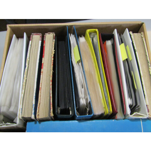 Ex-estate lot in a large archive box from a large collector's lifetime world collection. Amongst others mainly in albums, stockbooks some are well filled with country sections noted British Commonwealth, thematics in well filled binders incl Ships / Maritime, too much to list here, viewing advised. Plenty to go at here ideal for fairs dealer or ambitious collector. 1000s.