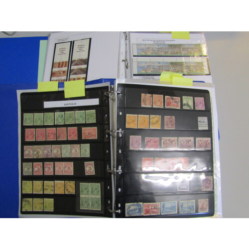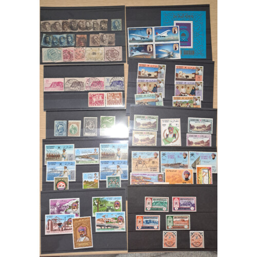 FOREIGN on stockcards with a useful range of different countries mint and used noted Italy 1950s key 55L stamps mint and used, Sovereign Order of Malta 1966 set, Togo 1978 1000f perf & imperf, Switzerland 1920 30c air with 1920 Basel cancel (taken as, SG 303 Cat £1900 if genuine), 1945 PAX 3f vertical pair vfu (Cat £260), Comores 500f & 1000f gold foil issues, Thailand 1905 8 vals to 1t part o.g. (Cat £137), French Syria 1922 2p50 on 50c blue mint block of 15 with inverted S variety (SG 96e cat £67), Russian P.O., Oman modern sets mint, Norway 1930 Tourist set used (Cat £150), Belgium 1851 Epaulettes 10c (6 + pair), 20c blue (4), S. Arabia 1920s-30s, Mongolia earlier, Tuva etc. Intr group on 29 stockcards.