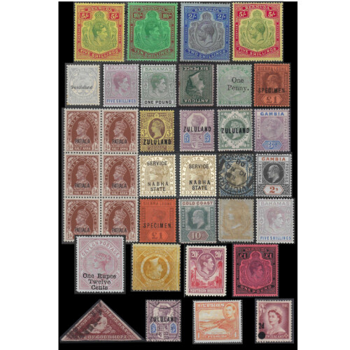 British Commonwealth collection mint and used QV to QEII on Hagner pages and leaves with dozens of different countries, better QV-early QEII noted Aden 1950s in blocks (STC £795), Ascension 1935 SJ variety, Australia 2s brown Roo mint (Cat £275), Postage dues in mint blocks, NSW 1850s imperfs, Bahamas 1938 to £1 mint, Bermuda earlier incl 1883 1d pair mint, 1918 Keyplates, 1938 GVI Keyplates to £1 mint (Cat £1000+), Brunei on leaves, Cape of Good Hope, Ceylon, Gambia 1898-1922 mint incl 1922 4s, Gibraltar 1898 set mint, 1903 8s mint, 1910 4s mint, Hong Kong 1905 EDVII $3 used (Cat £350), 1948 RSW 10c spur in N variety, India Convention States mint, K.U.T GVI mint incl 10c mountain retouch variety, Mauritius 1943 3c sliced S variety mint, N.Z. 1958 2d on 1½d surch error (SG 763b cat £130), N. Rhodesia 1938 set mint, Zululand 1888 to 1s mint, very mixed with enormous cat value stated in excess of £17,000. Ideal for Ebayer or fairs dealer. Approx. 850 stamps.