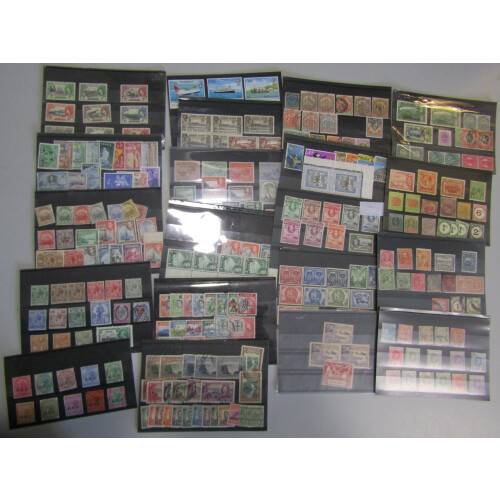 British Commonwealth ranges jumbled in packets, on cards and loose QV-QEII with dozens of packets to sort through with a wide variety of different countries, Swaziland, BWI, India states, Ceylon, Sudan, Queensland 5s used, Labuan, Malta, Oil Rivers, Br. Africa, Papua Lakatois, N.Z., Canada, NSW on paper, needs careful sorting.
