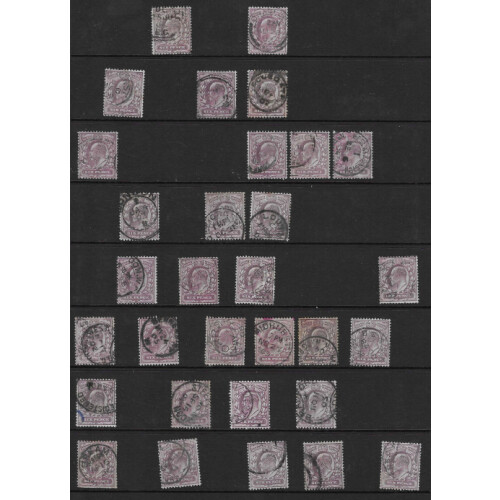1902-11 6d purple attractive selection of 63 examples on Hagner page including many shades, some mixed minor faults, small stains or crayon lines, a few have colour gone, mostly regd, CDS or light cancels, Cat £1386+. Unchecked for shades and varieties.