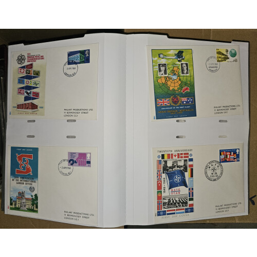 Group of revenues on duplicated sheets cancelled to order, postal history from early to modern on leaves with a variety of postmarks on P/S cards for EDVII with 037 duplexes, Douglas 407 duplex, PEEL, LAXEY, 1850 E.L with DOUGLAS dated arc in blue on reverse (Code 7), Port St Mary cds, Port Erin, 1852 RAMSEY dated arc, Crosby, 1845 IOM arc on 1d pink P/S env, CASTLETOWN small piece with double line h/s, 1882 part env redirected in IOM, Calf of Man sheets and proofs etc. intr lot. Mixed condition.