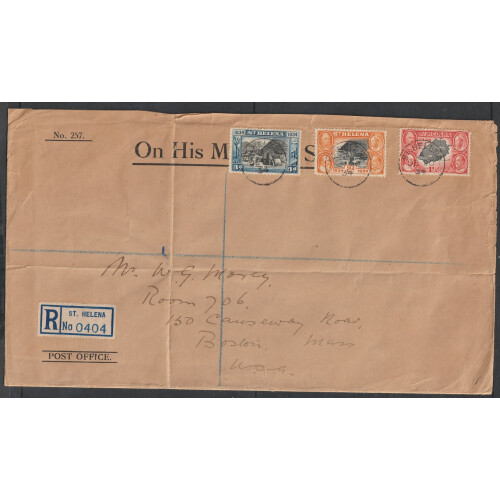 1934-35 Two large registered OHMS envelopes (creased, torn and folded) both to USA, 1934 bearing 1½d, 2d & 3d pictorial issue tied 20th Dec cds's, 1935 cover bearing 1s pictorial issue tied 10th April cds and US Customs Passed Free h/s.
