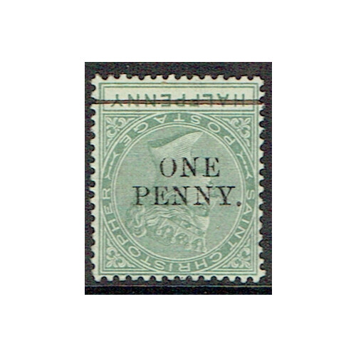 1886 ONE PENNY. surcharged inverted on 6d green hinged mint with manuscript line through the original value, very fine and scarce, SG 24a.