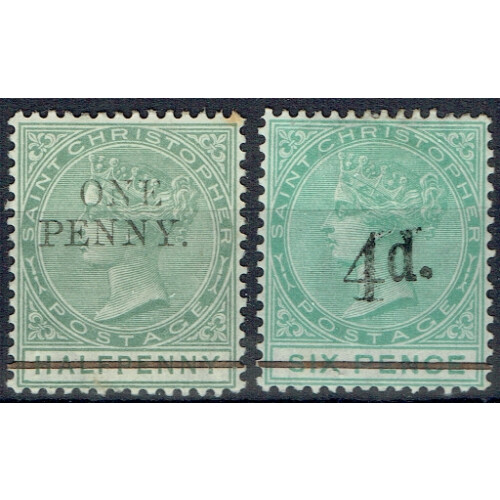 1886 1d on 6d and 4d on 6d both hinged mint, mainly fine, SG 24/5.