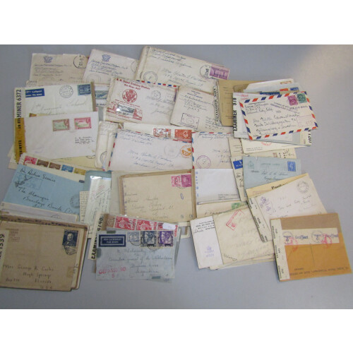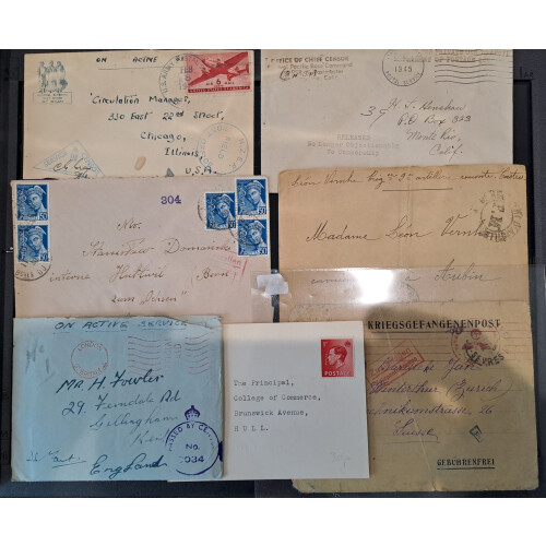 Accumulation of WW2 censored mail including Prisoner of War, military and soldier's FPO numbers, mail to a range of destinations, GB, France, Germany, South Africa, Switzerland, USA, Poland, Hungary, Curacao, etc. Good selection of censor markings and seal tape / labels. Approx. 135.