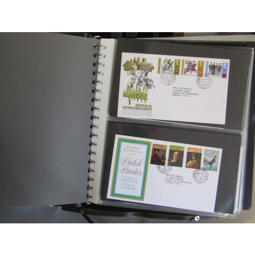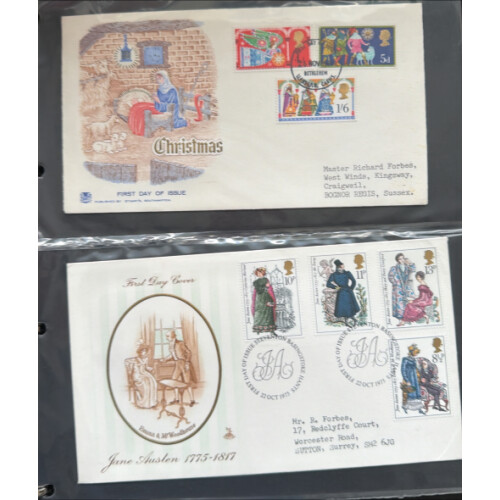 1966-79 First Day covers collection which includes many useful special postmarks noted 1969 St Pauls Cathedral Philatelix, 1970 Charles Dickens - Old Curiosity Shop cancel, 1969 High values set with FDI WINDSOR cds, nice range of Sovereign covers, 1971 Ulster Londonderry cancel, 1972 Village Churches cancel 1970s Mercury Covers, etc 80+.