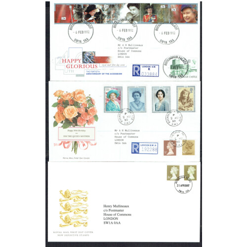 1991-1993 First Day Covers useful small collection with special cancels incl 1991 Crufts, Science Marconi, Soft Moon Landing Jodrell Bank, Sport Cardiff Arms, Roses Truro, Last Dinosaur, 1992 High Values £1-£5 Windsor illus set, etc to 1993, Bradbury cat £285. (28).